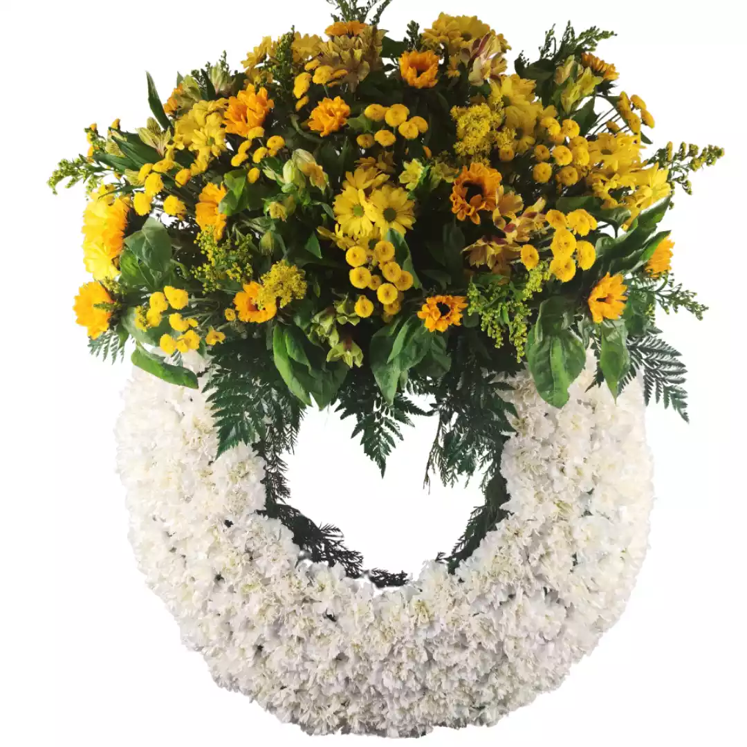 Corona de Claveles, Margaritas y Verdes Exóticos