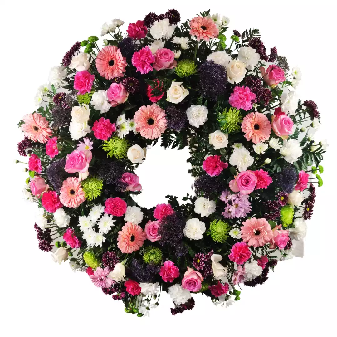Corona de Rosas, Claveles, Gerberas, Margaritas y Tracheliums